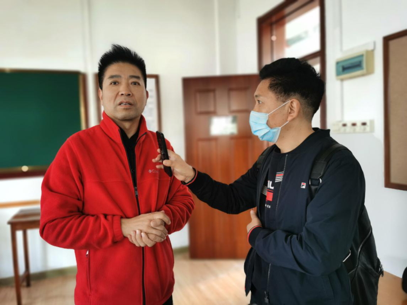 勵方明(左)接受記者采訪