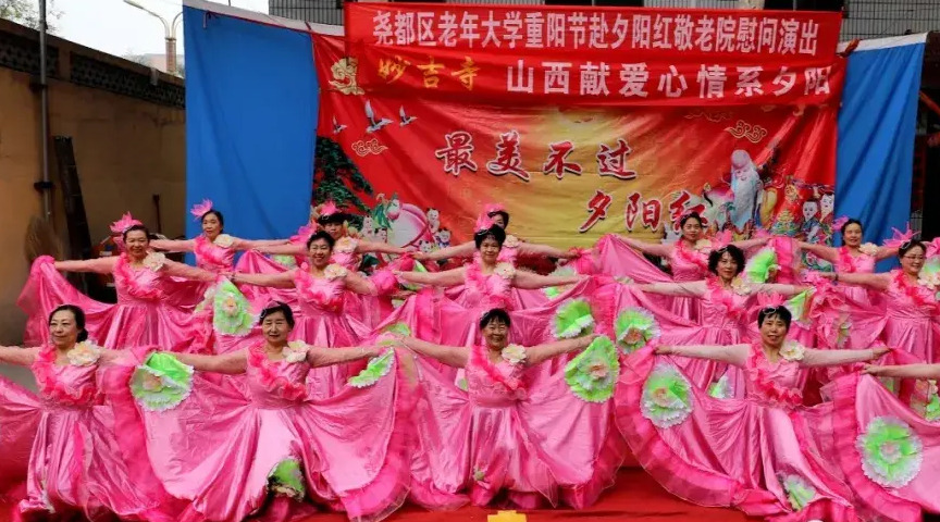 10月20日上午,堯都區老年(nián)大學(xué)的(de)學(xué)員們在副校長(cháng)魏妙珍、闫曉倩的(de)帶領下,來到夕陽紅(hóng)敬老院慰問演出。