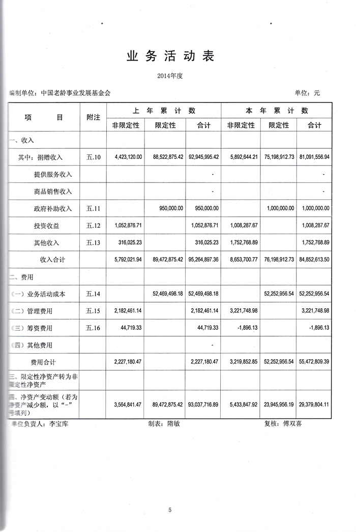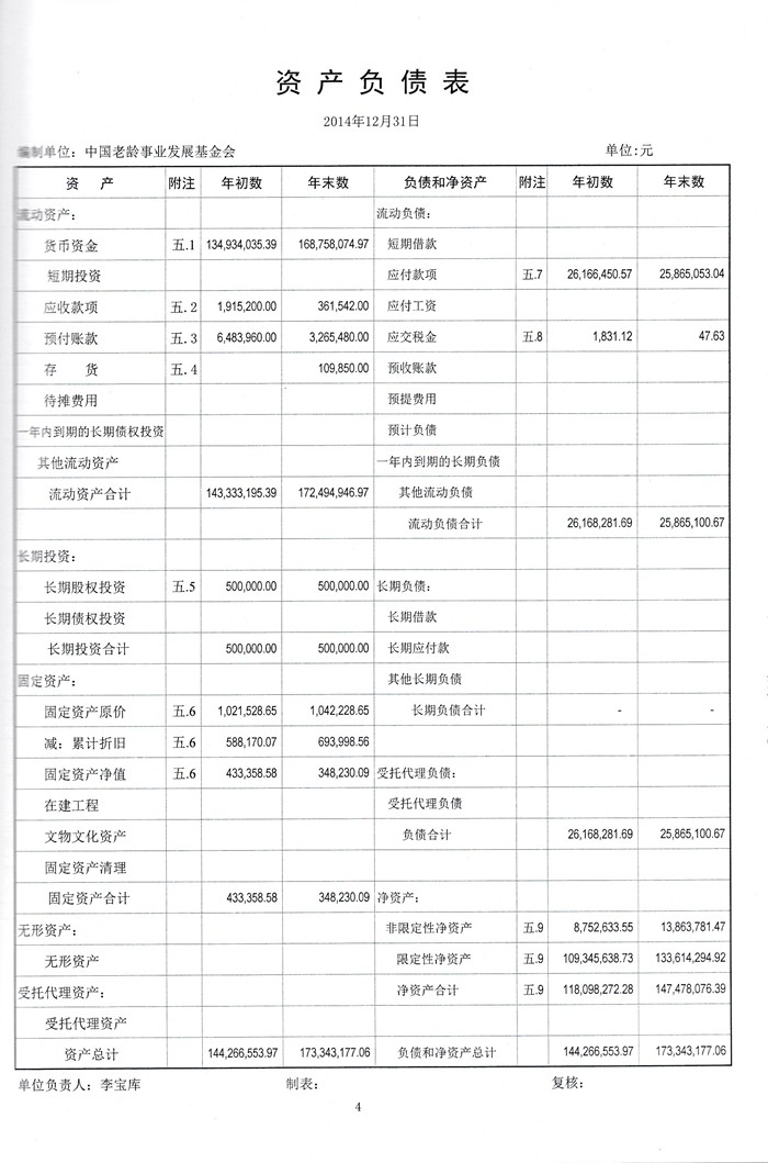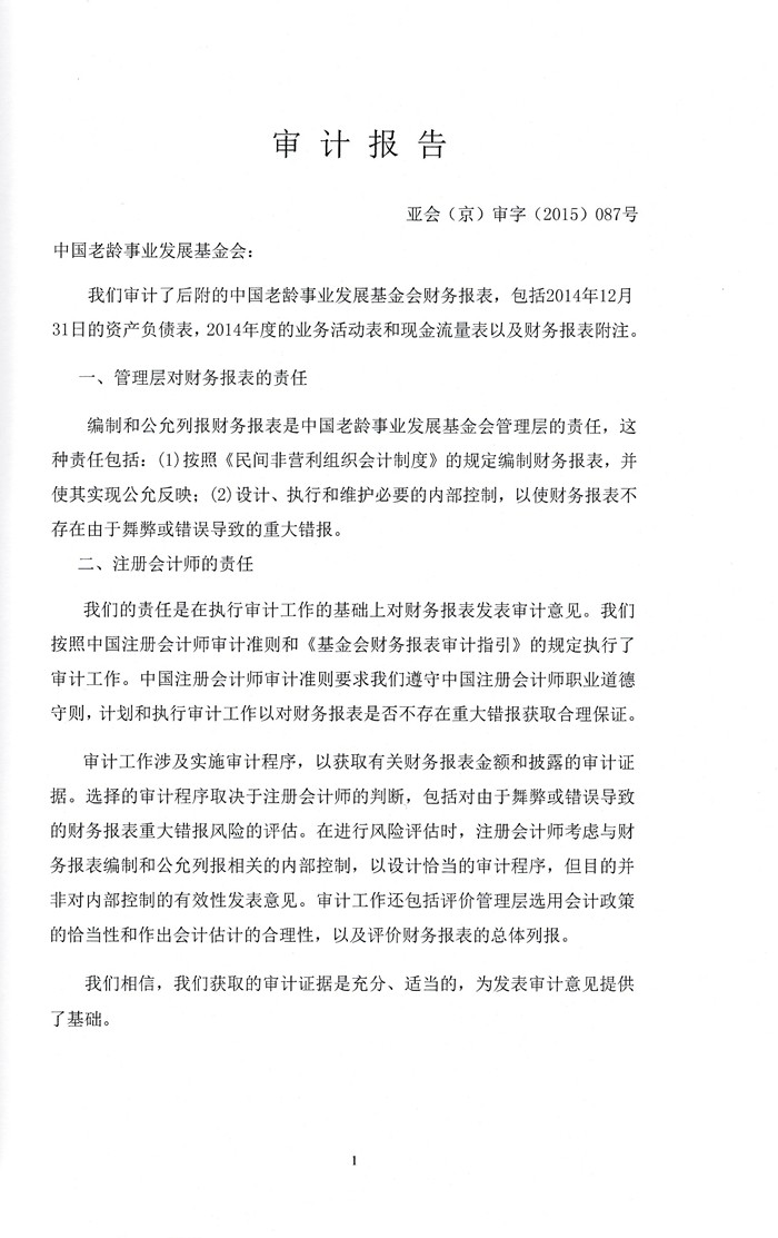 2014年(nián)度中國老齡事業發展基金會審計報告