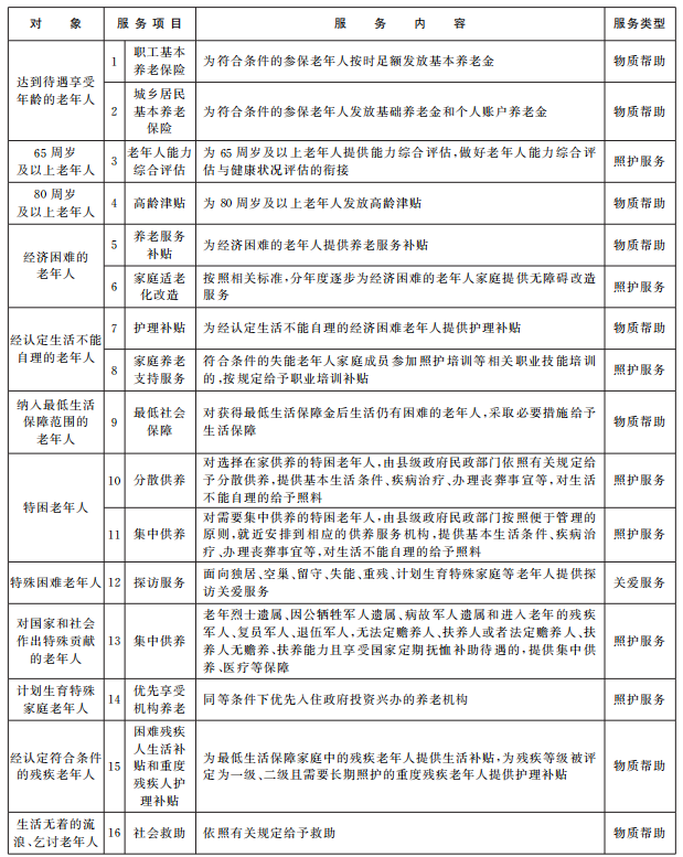 國家基本養老服務清單