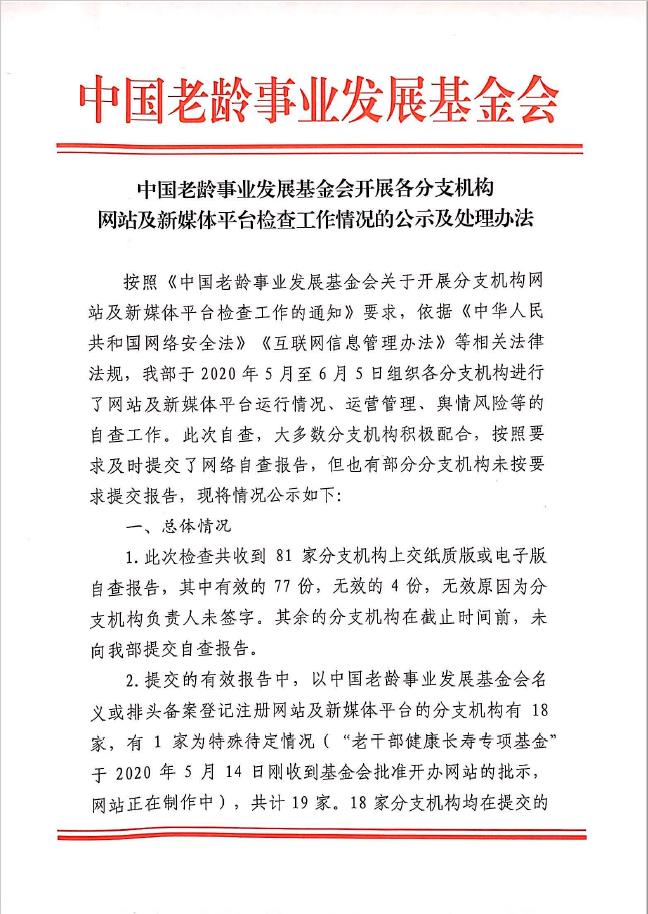 中國老齡事業發展基金會開展各分支機構網站及新媒體平台檢查工作情況的(de)公示及處理(lǐ)辦法